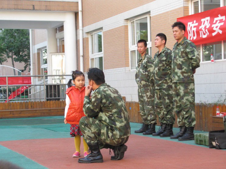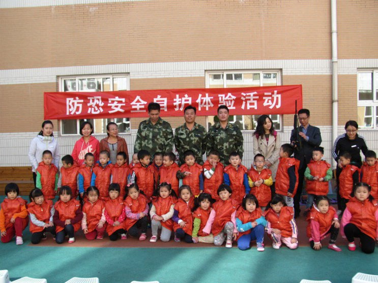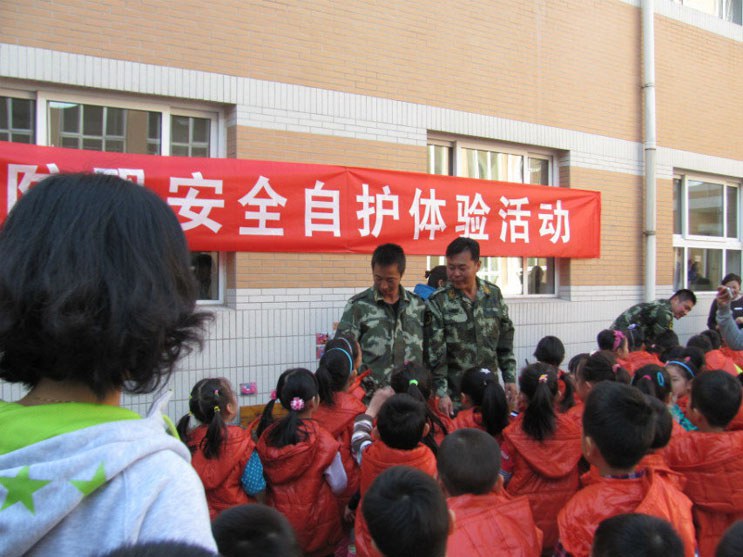 2014年10月15日上午,巨峰特训走进劲松一幼华纺易城幼儿园,开展防恐培训活动。