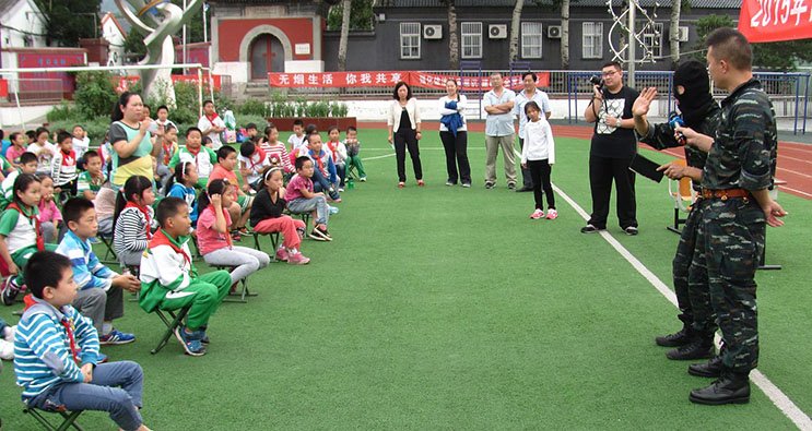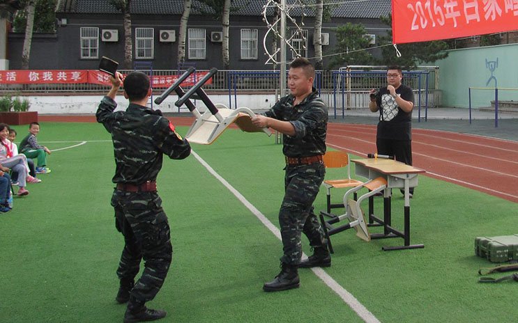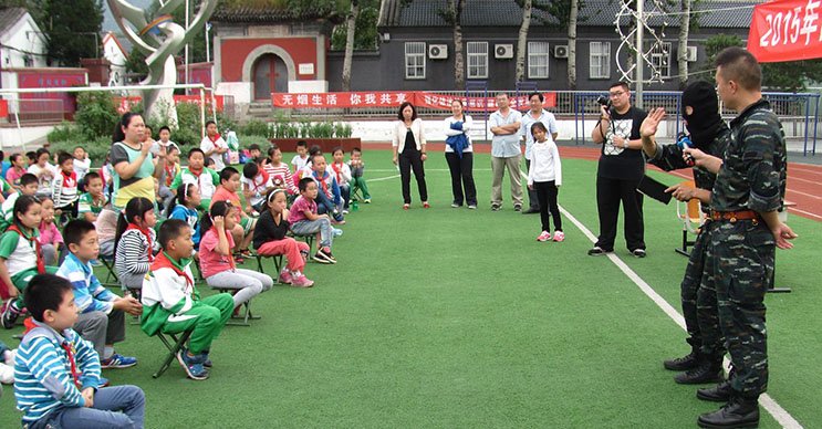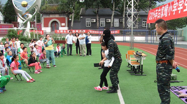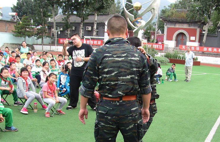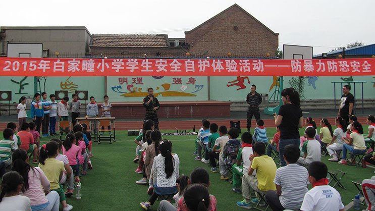 2015年9月23日,巨峰特训走进白家疃小学,开展防恐防暴、安全自护、自救互救体验式培训。