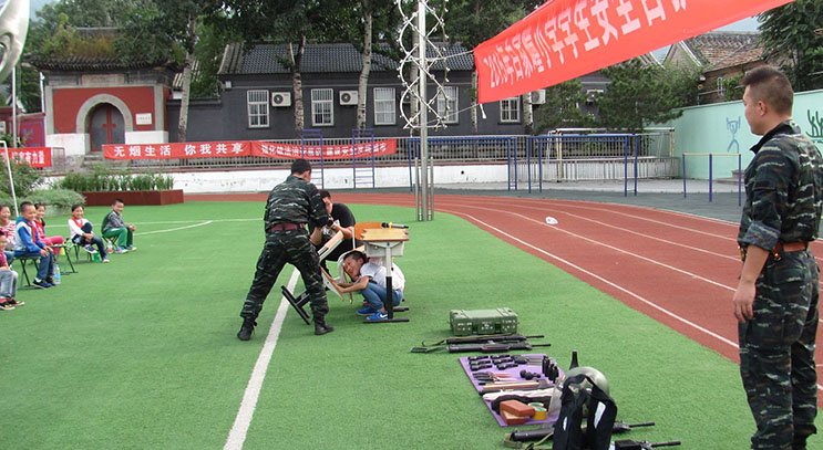 为了进一步强化全体师生的防恐、防暴安全意识,提高师生对突发事件的应变、逃生、自救、自我保护能力,2015年9月23日,白家疃小学特邀请巨峰特训的教官们,为全校师生开展了一场富有教育意义且生动实用的防恐防暴、安全自护、自救互救体验式培训。
