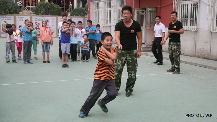 为了有效防范校园内发生的暴力劫持事件,加强教职员工面对突发恐怖事件的防范意识,提高教职工面对恐怖事件的合理处理、自护自救及保护幼儿有效逃生避险的能力,最大限度的减少因突发恐怖事件对师生造成的人员伤害,2014年9月17日,巨峰特训团队进入芳草地国际民族校区开展“防恐安全自护自救体验式演练活动”!