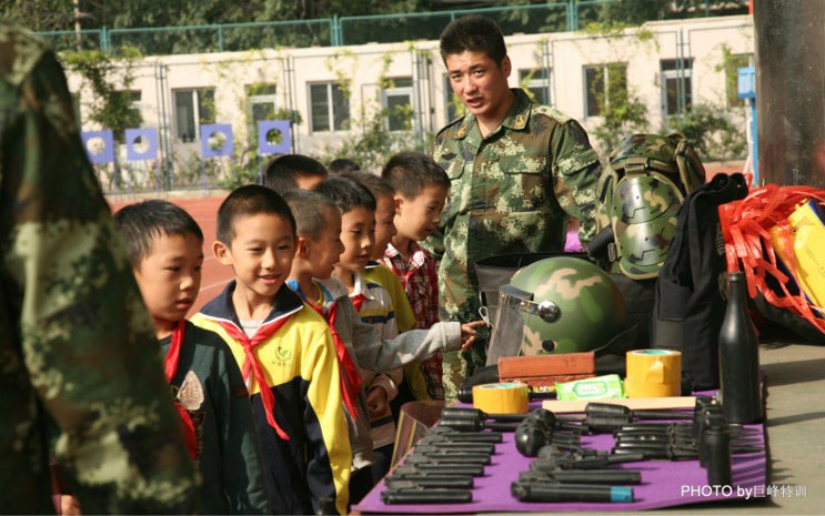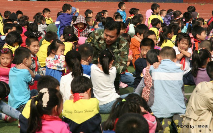 2014年9月30日,巨峰特训走进石油学院附属小学东校区,开展防恐活动。