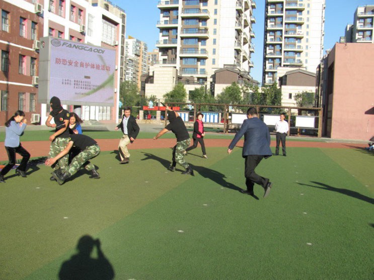 2014年10月13日,巨峰特训走进芳草地国际学校双花园校区,开展防恐培训活动。