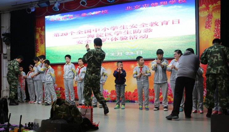 每年3月最后一周的星期一是全国中小学生安全教育日。在第20个“全国中小学生安全教育日”到来之际,北京市第三聋人学校于2015年3月23日,利用校会时间,与北京市海淀区青少年活动管理中心共同为学生开展了主题为“我安全、我健康、我快乐”——安全防恐防暴力自救自护体验活动。目的就是为了推进在校学生安全教育工作,保证学生的健康成长。在本次活动中,北京市第三聋人学校特邀请到“巨峰特训”的专业团队来为学生进行防恐防暴力自救自护体验活动。