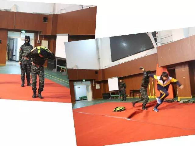 当坏人抓住我们的头发、衣领及由后被抱我们该如何解脱,几位教官做示范动作,每一个动作都贴近实战,生动演绎了遇到歹徒袭击时的反击方法。