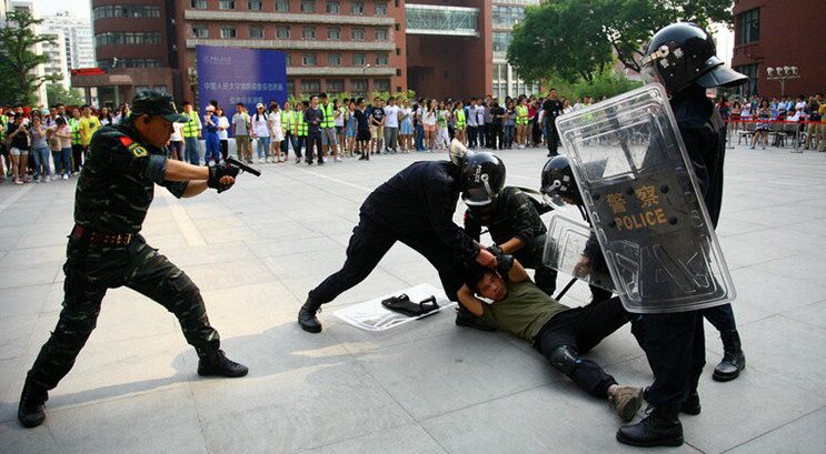 2015年5月31日下午4点,中国人民大学明德法学楼楼烟雾弥漫,同时西门值班保安发现可疑人员并作出汇报,中国人民大学首次反恐防暴应急综合演练正式拉开帷幕。