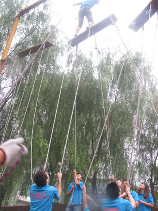 活动安排了高空挑战项目与团队协作项目,虽然在第一天下起了雨,但是这丝毫没有影响我们的情绪,活动按照流程一步步的走下去,在晚上,组织了篝火晚会,大家玩的很开心。
