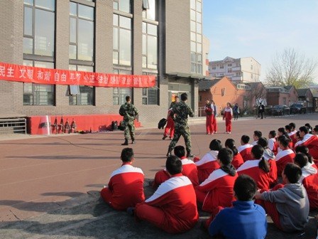 2014年12月24日下午,北达资源中学初二年级的5、6、7班在老师的组织下,于学校的操场上,成功举办了“防恐防暴讲座”。校方特意请来青少年活动中心的两位教官,和前雪豹突击队队员为我们讲解,并亲自做出了示范。