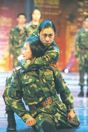 众所周知,男女是有别的,但一戴上这红色贝雷帽,这种意识就会成为累赘。一次野外训练碰到一条10多米宽的臭水沟,如果在平日不要说这水沟,就是刀山,姑娘们也会毫不犹豫冲过去。可污黑的深水确让爱美的姑娘们为难,偏偏又碰上是个年轻的男教官“不明事理”。于是在教官“特警只有军人没有女人”的大吼中,姑娘们再也顾虑不了那么多跳了下去,在又冷又臭的水沟里坚持了几个小时30多个来回训练。中午,姑娘们腰酸肚痛地在床铺上直打滚,她们都哭了,哭泣是女兵们最好的自我调节,也是相互安慰相互鼓励的最好传递。哭完了,大家的心理也就减了压,一肚子的委屈和烦躁也得以释放,抹掉泪痕,把又脏又湿的作训服拧一拧,甩一甩,抖擞精神又准备开始训练。